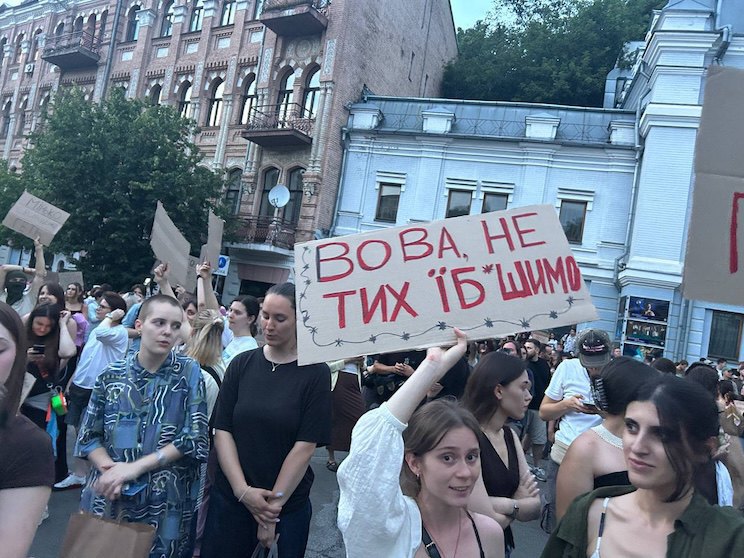 У декількох українських містах, включно зі столицею, сьогодні о 20:00 розпочалися акції протесту через ухвалення Верховною Радою законопроєкту з правками про підпорядкування НАБУ і САП генеральному прокурору. Анонс заходів з'явився як відповідь на голосування і дуже оперативне підписання законопроєкту спікером Ради Русланом Стефанчуком. Невідомо, чи підпис устиг поставити президент: на сайті ВР станом на зараз – "технічні роботи", але нардеп Ярослав Железняк писав, що президент уже підписав.