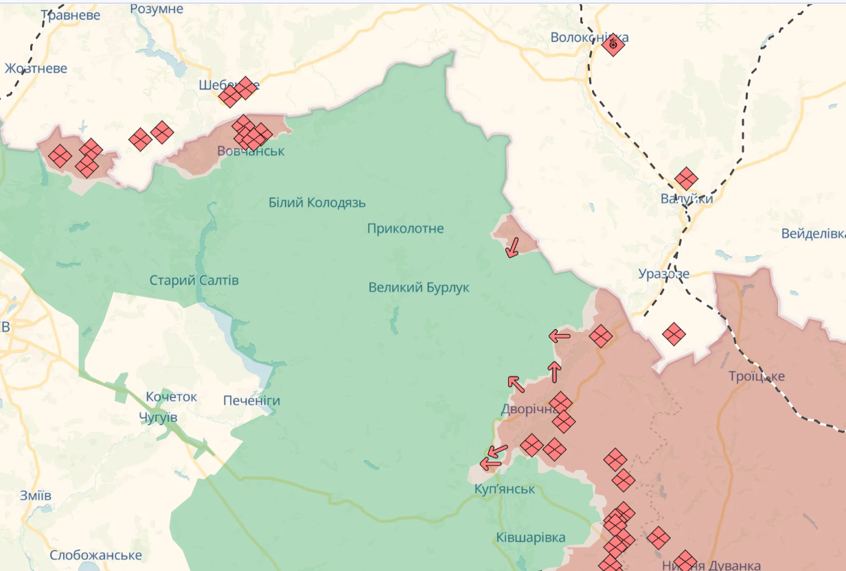 Вектори атак явно вказують на непереборне бажання ворога померти саме дорогою на Великий Бурлук. Про це свідчить чітко синхронізована активізація російських військ на Вовчанському, Великобурлуцькому та Куп'янському (з плацдарму на р. Оскіл біля Дворічної) напрямках. Руху на Куп’янськ 6-та армія приділяє все ж таки не меншу увагу, якщо не більшу.