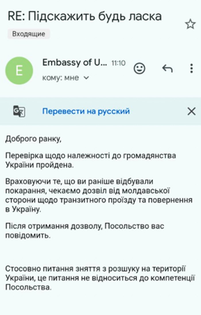 «Консульство вже виготовило нам білі паспорти для повернення додому. Багато з них уже протерміновані — потрібно робити нові. Тепер чекаємо, поки Молдова дозволить транзит через свою країну. Загалом за ці місяці тут забрали до України лише чотирьох чоловік, які не були раніше засуджені. Одного — 4 серпня, проте тут він просидів три місяці», — розповідає Сергій.
