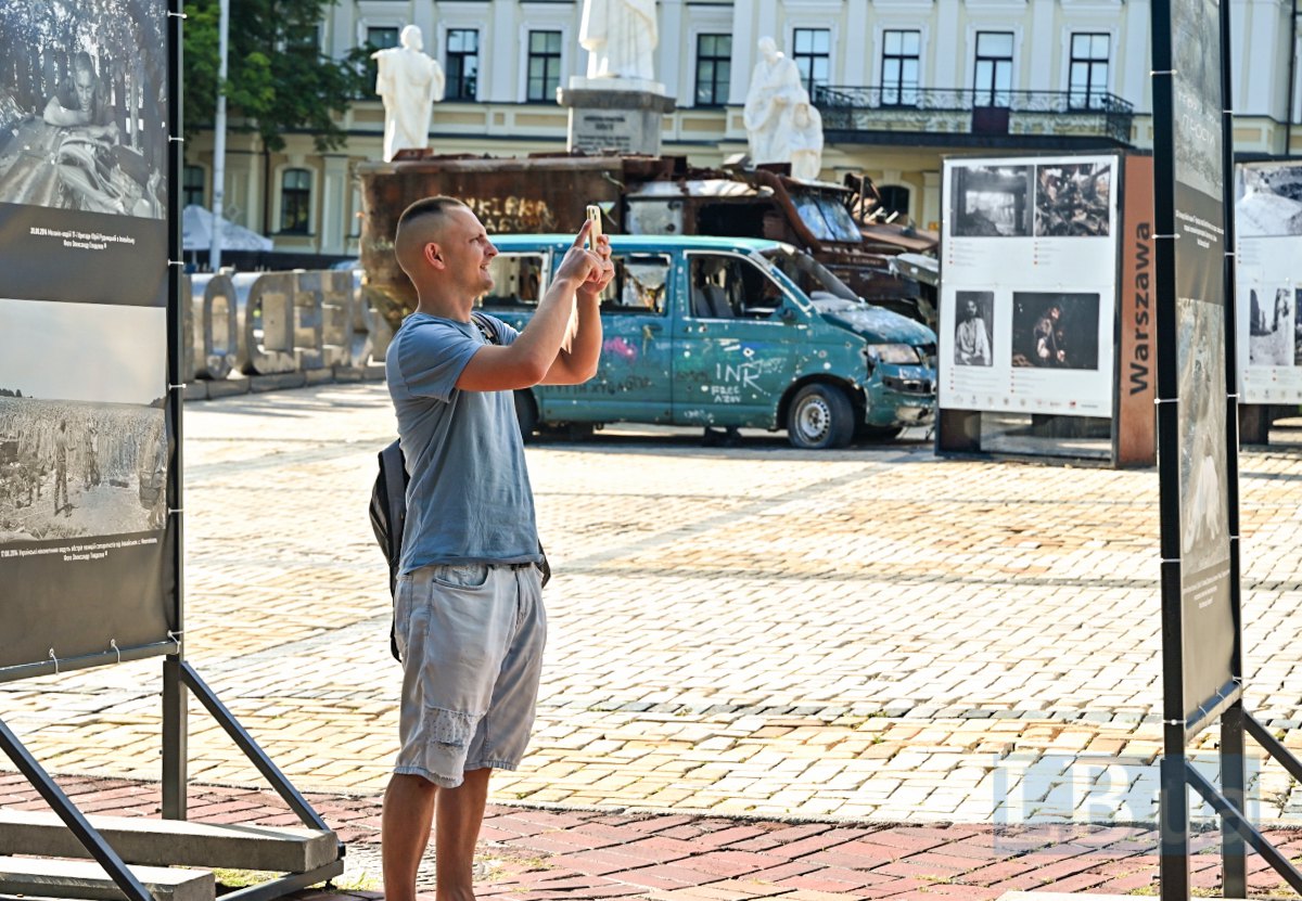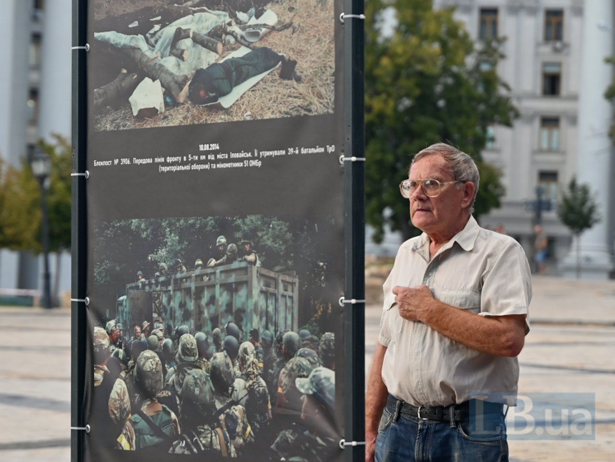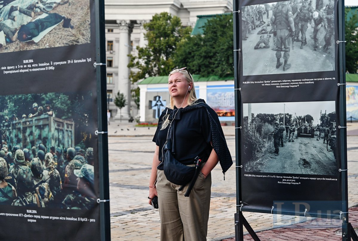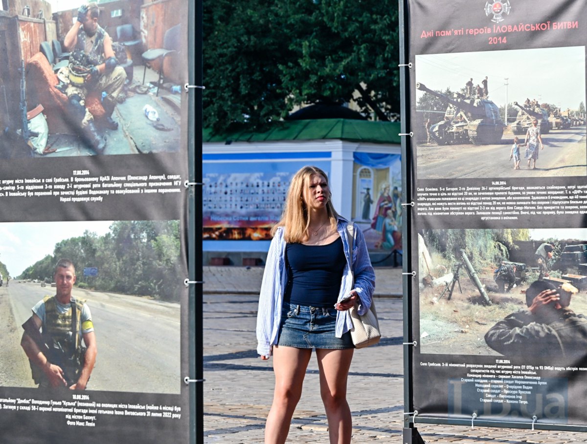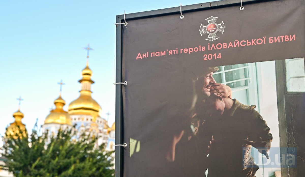 Сьогодні на Михайлівській площі в Києві відкрилася фотовиставка "Дні пам’яті героїв Іловайської битви 2014", присвячена пам'яті тих, хто одинадцять років тому став на захист нашої країни у битві під Іловайськом.
