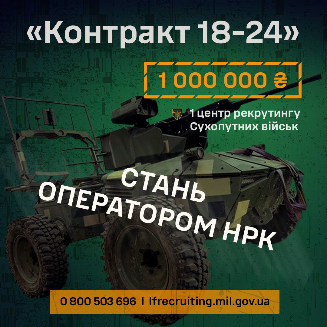 Міністерство оборони розширило проєкт «Контракт 18–24» на нові посади. Уряд ухвалив рішення про запуск окремого напрямку програми — контракту для операторів дронів. Про це повідомляє 1 центр рекрутингу Сухопутних військ.