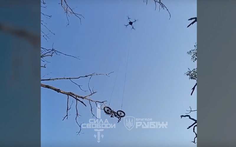 Згодом Танкісту доправили дроном ще один електровелосипед. Цього разу доїхав без пригод.