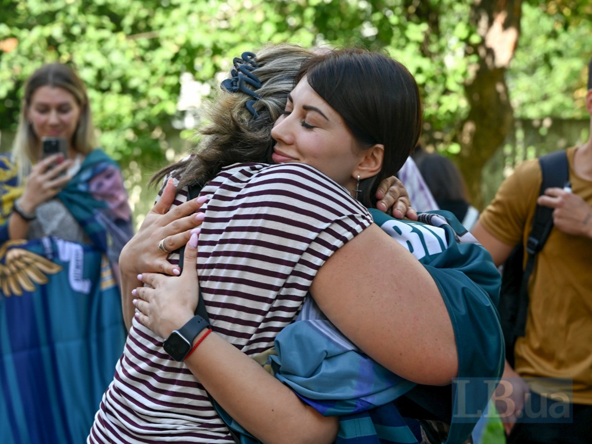На території, куди мають приїхати звільнені з полону, тісно. Заздалегідь сюди прийшли люди, які борються за своїх: родичі українських полонених — тих, хто сьогодні повернеться, родичі зниклих безвісти й ті, хто чекає попри все («а раптом сталася помилка й він таки повернеться сьогодні»).