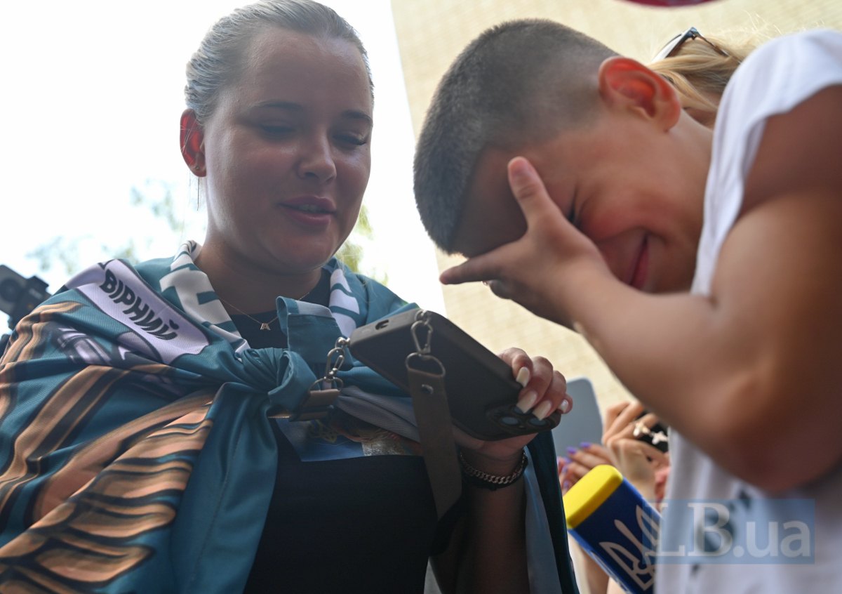 «Упізнав?» — «Так». — «Що тобі тато перше сказав?» — «Що я його побачу через 10 днів». — «Ми тебе вітаємо!» — «Дякую, дякую. Ура!» — каже хлопчик журналістам.