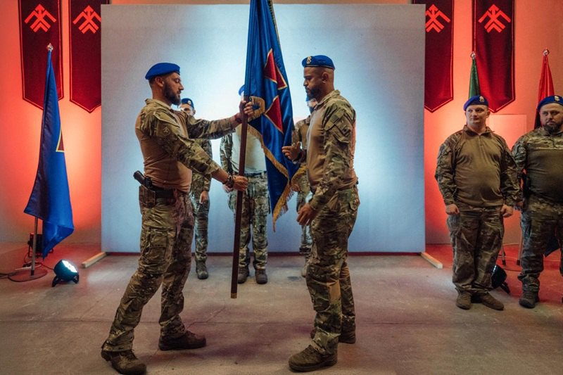 На урочистій церемонії бойовий прапор бригади новому комбригу передав Максим "Альтаїр" Голубок, начальник штабу – перший заступник командира корпусу "Хартія".