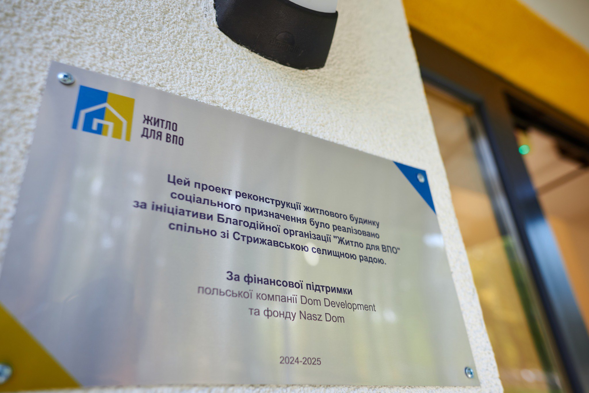 Точніше це не ремонт, а повна реконструкція. З облаштуванням ванних кімнат, кухонь, придбанням меблів і техніки для кожної квартирки. «Останній проєкт на Вінниччині коштував 28 млн грн, — розповідає президентка фонду. — Площа 700 м², нове облаштоване укриття поблизу будинку, благоустрій — дитячий майданчик і відпочинкова зона, обладнані квартири».