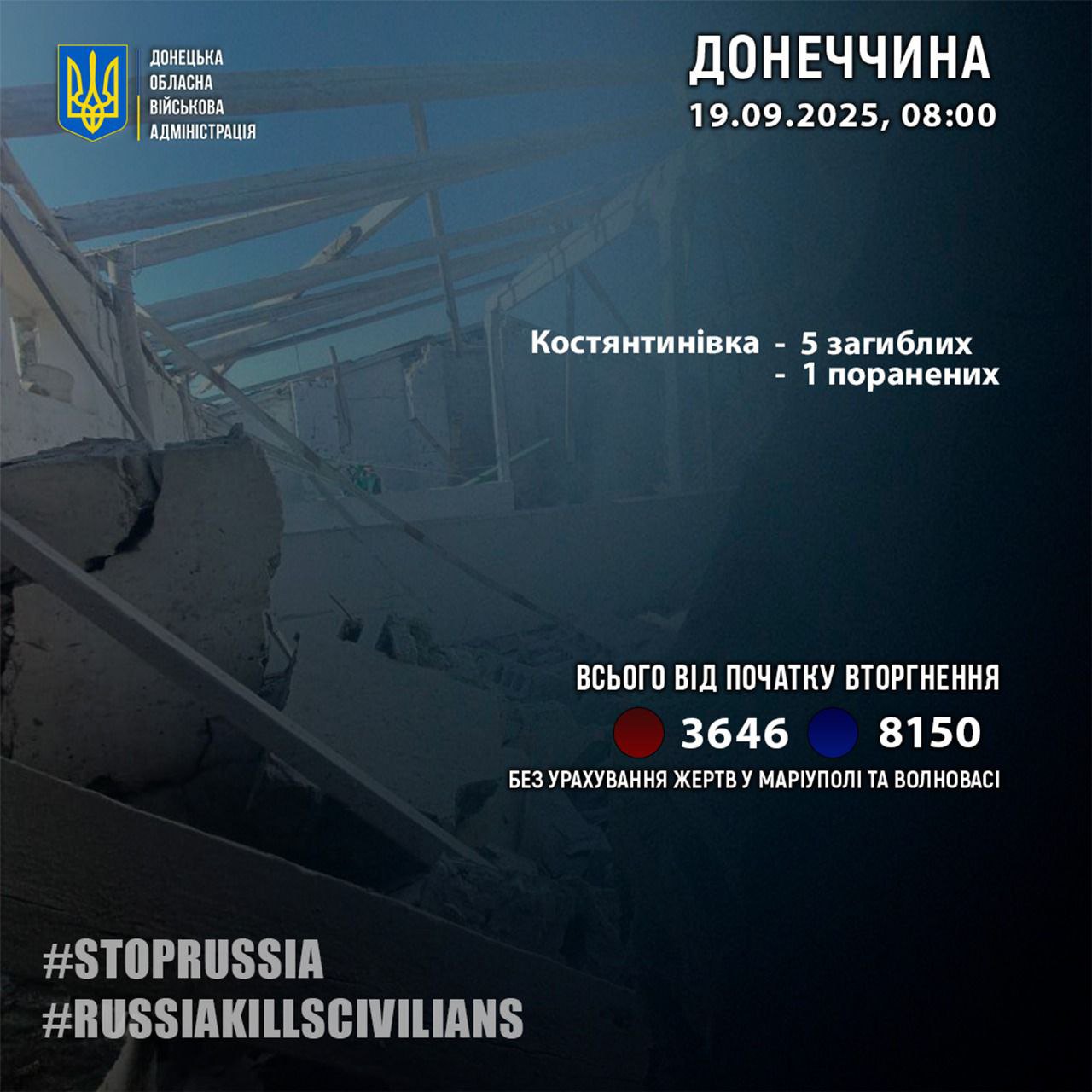 5 людей загинули у Костянтинівці. Росіяни вбили двох жінок 62 і 65 років та трьох чоловіків 65, 67 і 74 років.