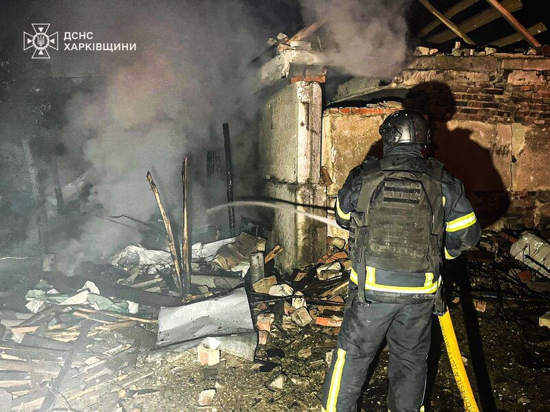 Унаслідок нічної російської атаки безпілотниками по селищу Великий Бурлук Куп'янського району Харківщини виникла пожежа у приватному будинку.