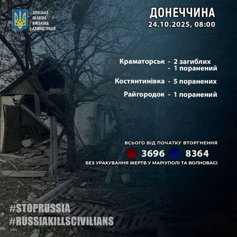 За минулу добу 23 жовтня росіяни вбили двох жителів Донецької області.