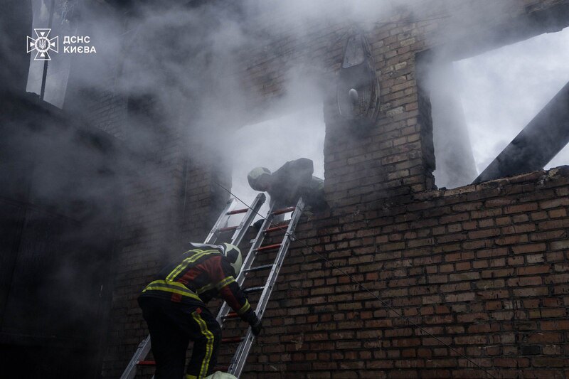 У Києві продовжують ліквідовувати пожежі та розбирати завали після чергового обстрілу Росією української столиці.