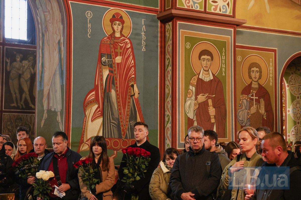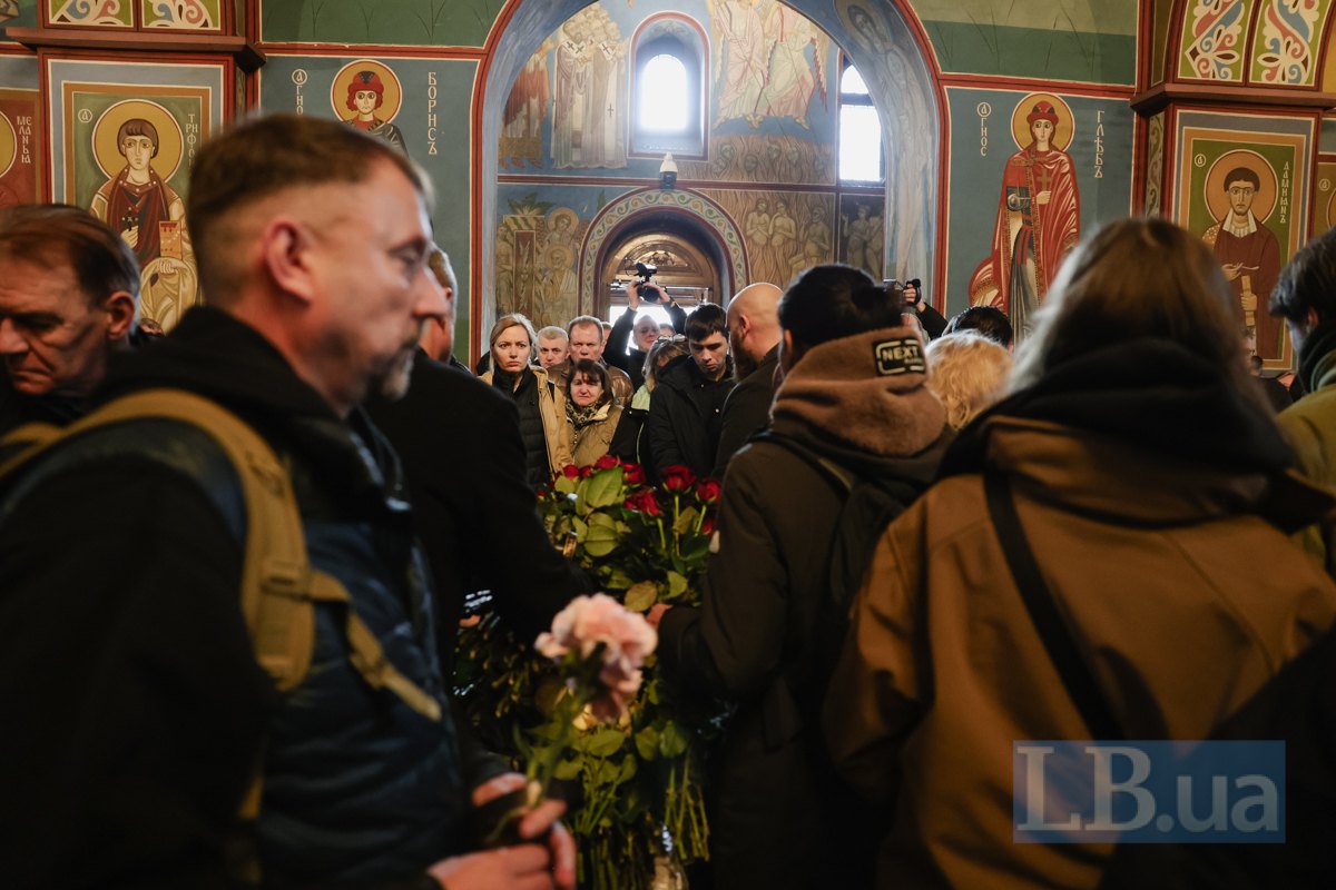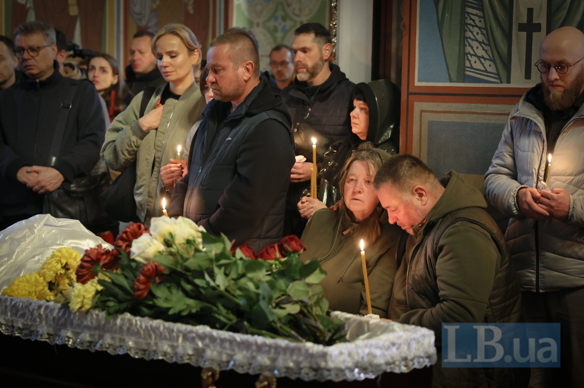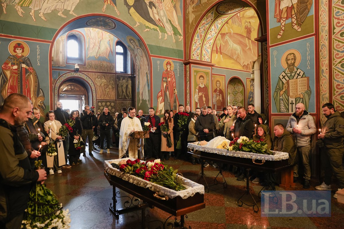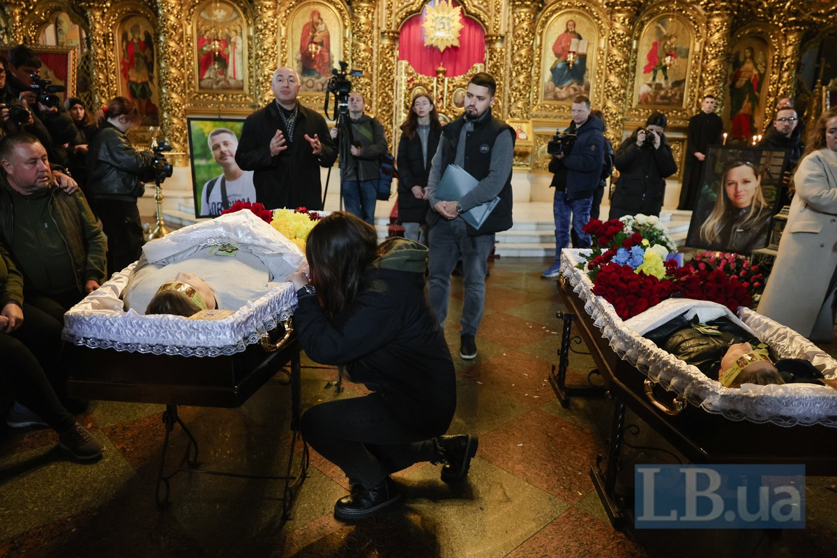 На прощання в Михайлівському Золотоверхому соборі зібрались до 100 людей. Це рідні, друзі та колеги загиблих.