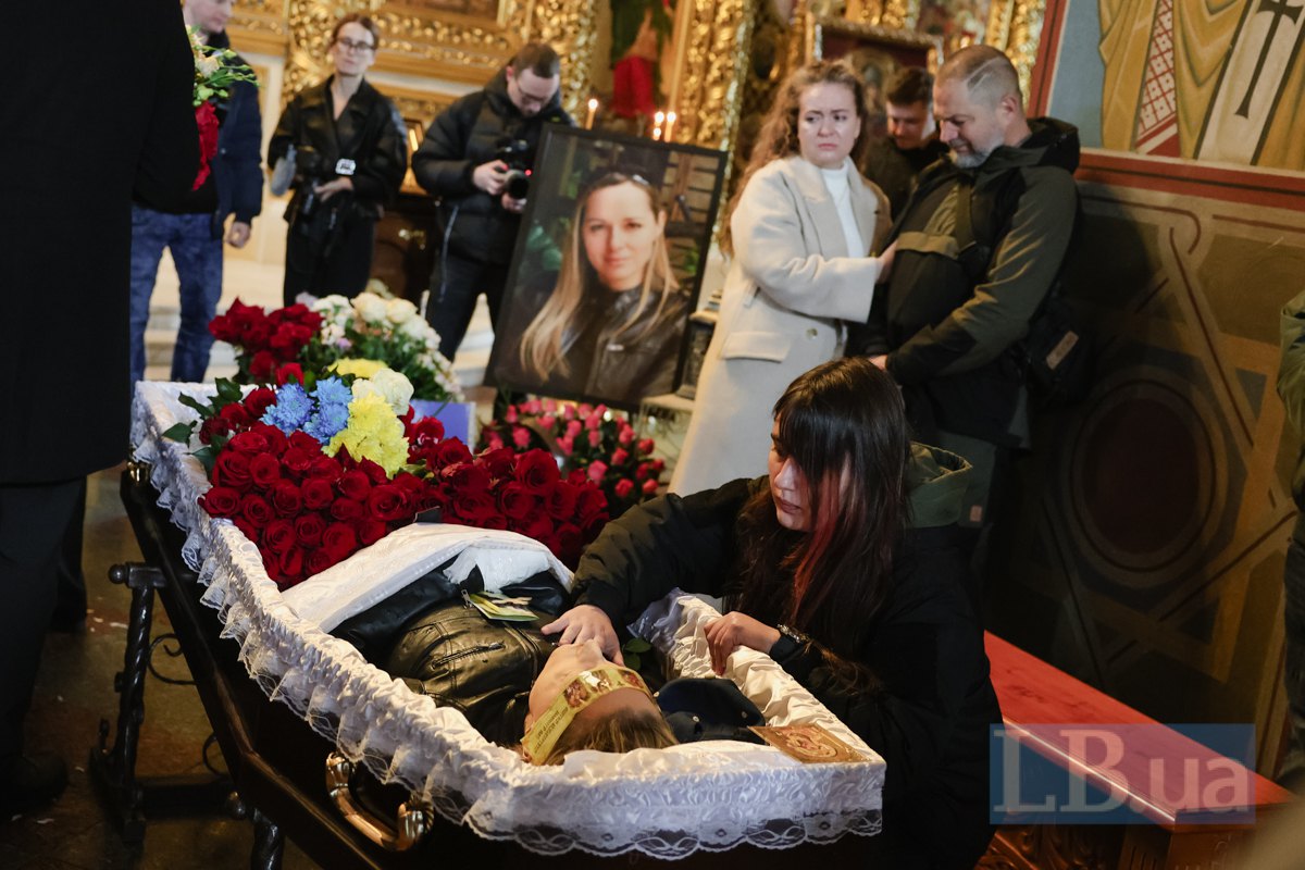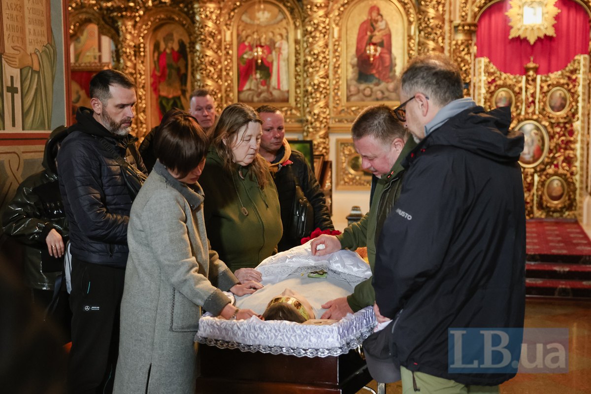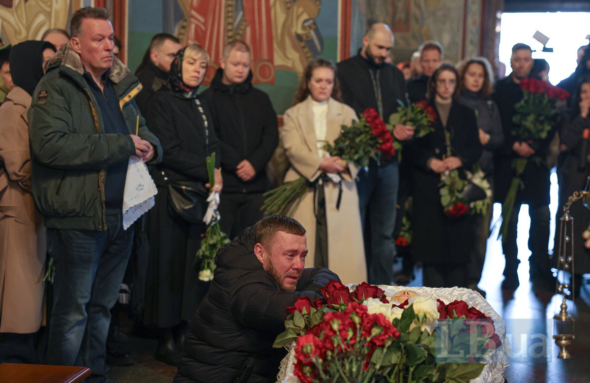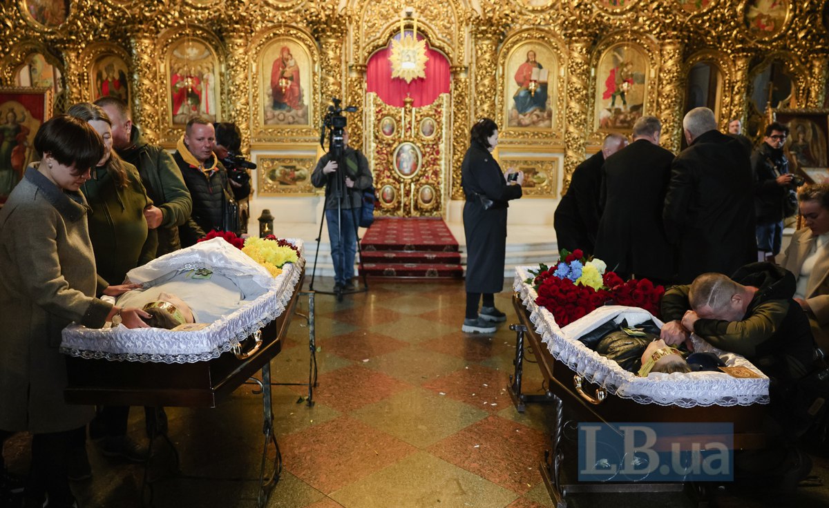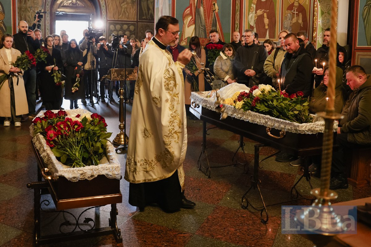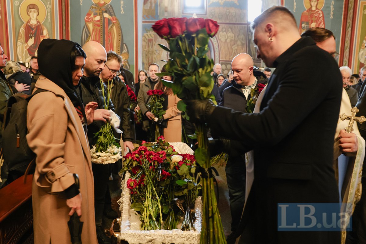 На прощання в Михайлівському Золотоверхому соборі зібрались до 100 людей. Це рідні, друзі та колеги загиблих.