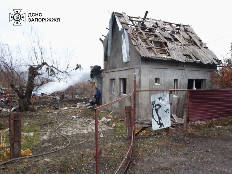 У Запорізькому районі російська бомба влучила неподалік житлової будівлі – частково зруйнувала будинок та пошкодила господарські споруди.