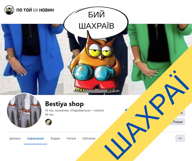 Якось ще у квітні до редакції фактчекерського проєкту «По той бік новин» звернулася користувачка соцмереж зі скаргою на Facebook-крамницю «Bestiya shop». Замовила там костюм, оплатила наперед, два тижні дарма очікувала відправлення товару, а потім її просто заблокували. Жінка пробувала написати обурений коментар під одним із дописів цієї онлайн “крамниці”, але адміни швидко видалили скаргу. Написала заяву в кіберполіцію – звідти справу передали до поліції Львова, а там потерпілій пояснили, що таких справ тисячі і не варто їй дарма ще на допити їздити. Нічого ніхто не доведе і не поверне.