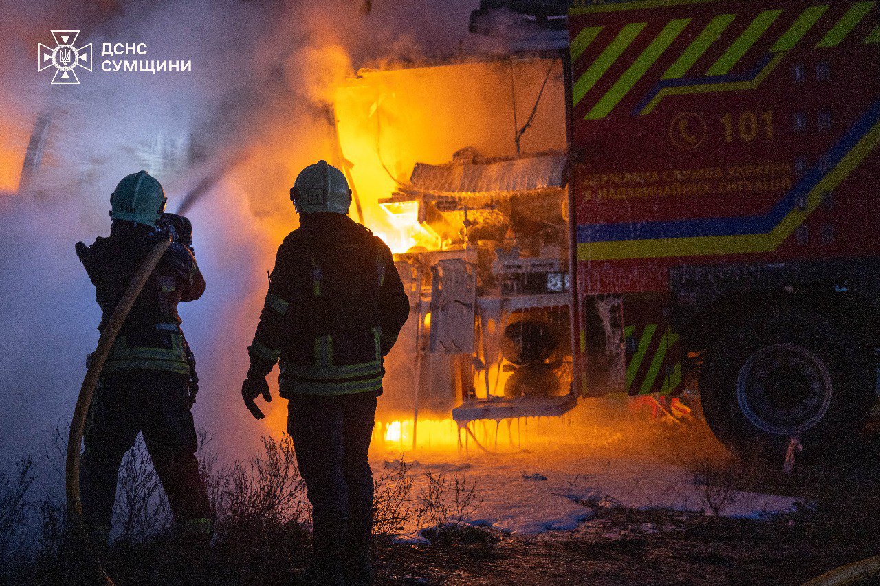 У Сумах росіяни завдали прицільного удару по рятувальниках під час гасіння пожежі. Унаслідок удару знищено пожежний автомобіль.