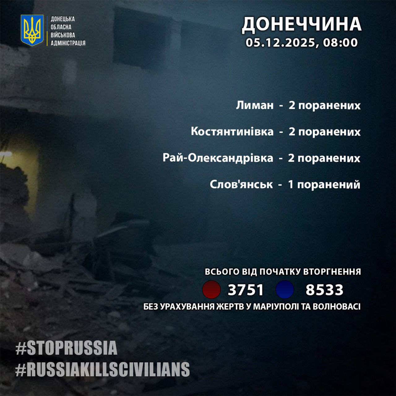 За 4 грудня росіяни поранили 7 жителів Донеччини.