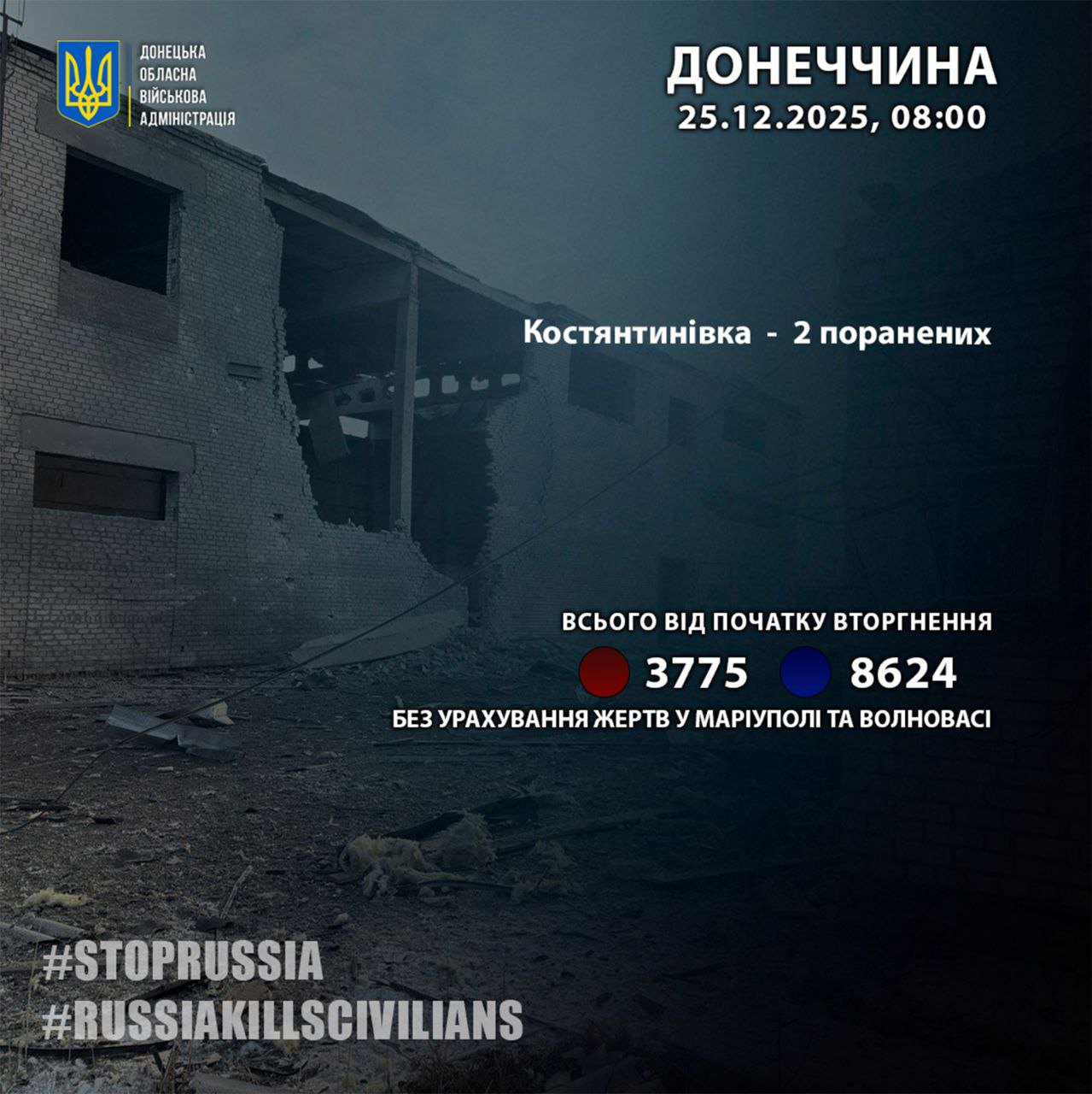 За середу, 24 грудня росіяни поранили двох жителів Донецької області.