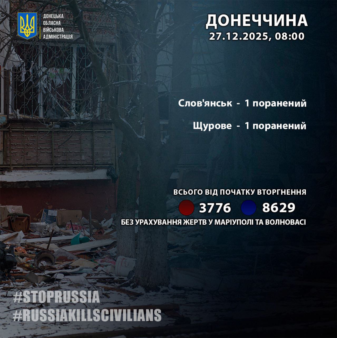 "За 26 грудня росіяни поранили 2 жителів Донеччини", – ідеться у повідомленні.