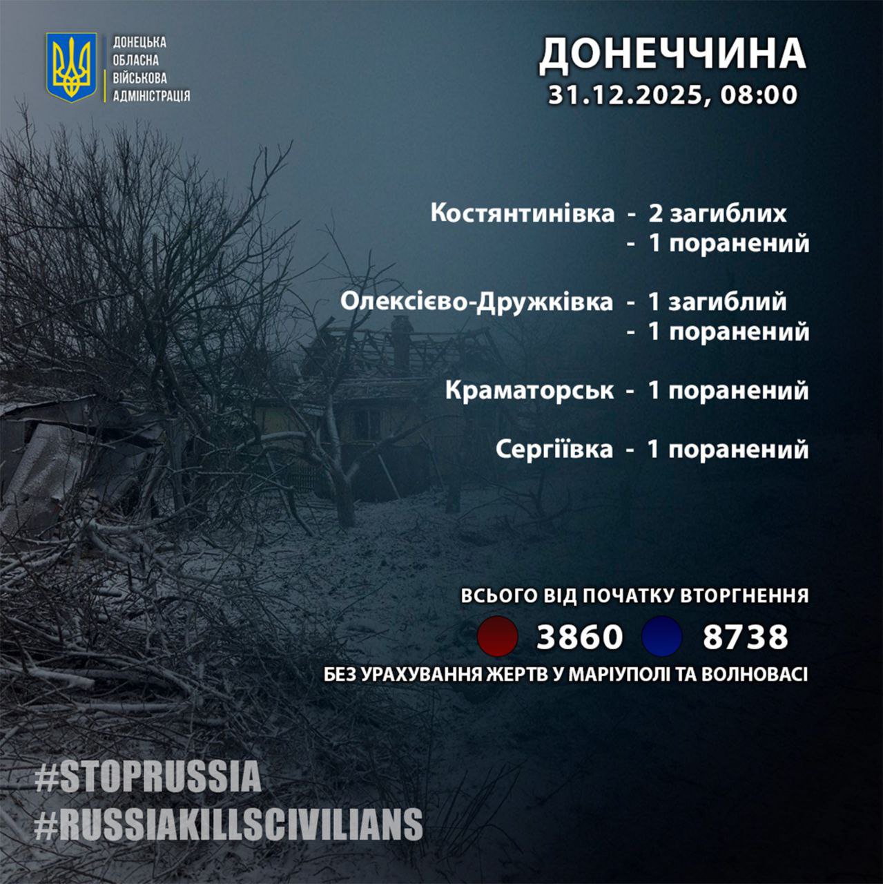 За 30 грудня росіяни вбили три жителів Донецької області.