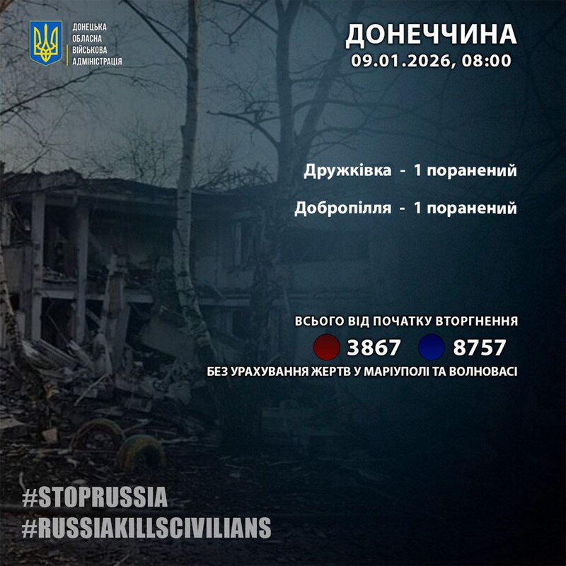“За 8 січня росіяни поранили 2 жителів Донеччини”, – зазначив він.