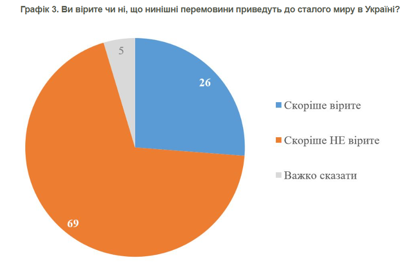 Водночас вірять в успіх перемовин – 26%. Ще 5% не змогли визначитися із своєю думкою.