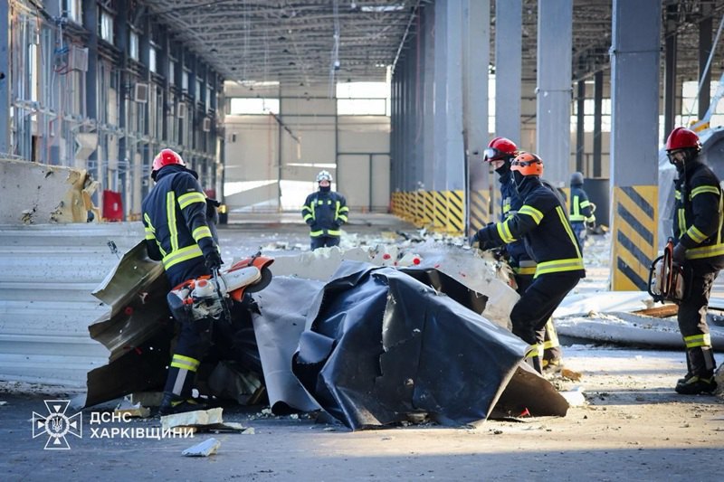 На Харківщині завершено аварійно-рятувальні роботи на території поштового терміналу, який атакувала Росія вночі 13 січня.
