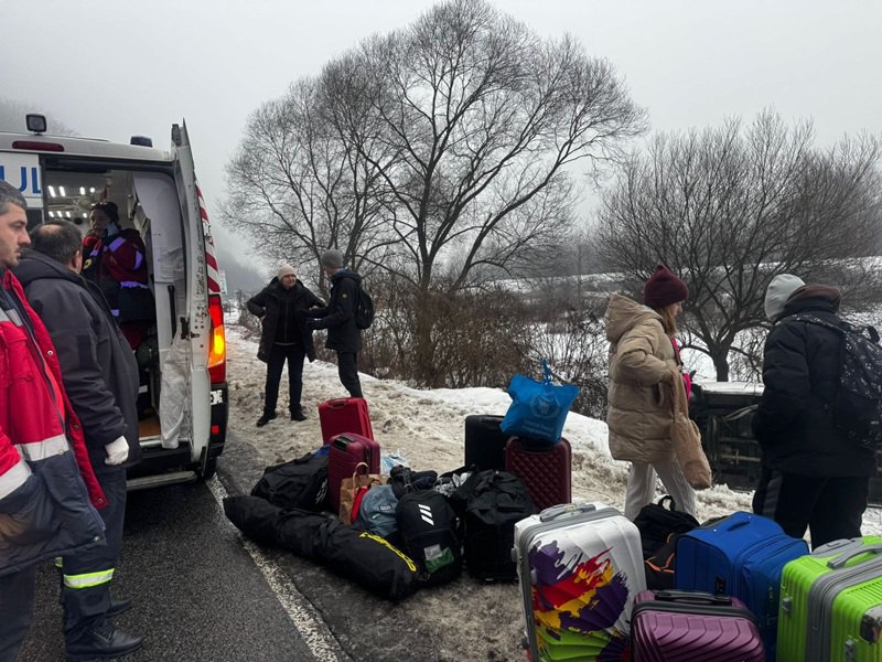 На Закарпатті через ожеледь мікроавтобус Mercedes Sprinter, який віз дітей з Києва на відпочинок, з’їхав із траси й перекинувся на бік.