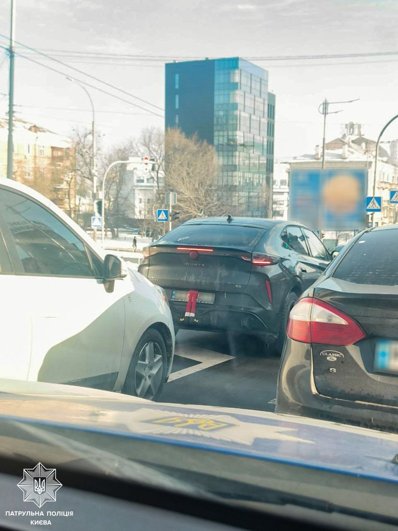 "Патрулюючи у Солом'янському районі, ми помітили та зупинили автівку Volkswagen, у якої був закритий номерний знак. Ми провели з керманичкою профілактичну бесіду щодо недопущення подібних випадків у майбутньому та винесли на неї постанову за ч. 1 ст. 121-3 (порушення вимог законодавства щодо використання номерних знаків транспортних засобів) КУпАП", - йдеться в повідомленні.