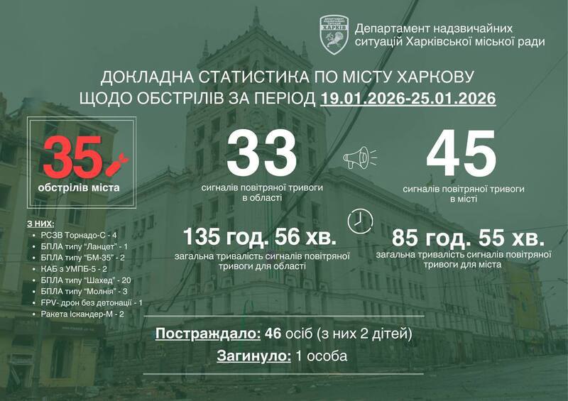 “Статистика говорить сама за себе – 35 обстрілів. Ворог гатив усім наявним арсеналом: ракети, КАБи, РСЗВ”, – підкреслив мер обласного центру у телеграмі.