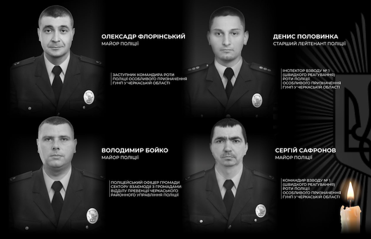 У Черкаській області 27 січня під час затримання підозрюваного у вчиненні вбивства загинули четверо поліцейських. За словами голови Нацполіції Івана Вигівського, розшукуваний чоловік відкрив прицільний вогонь по правоохоронцях.