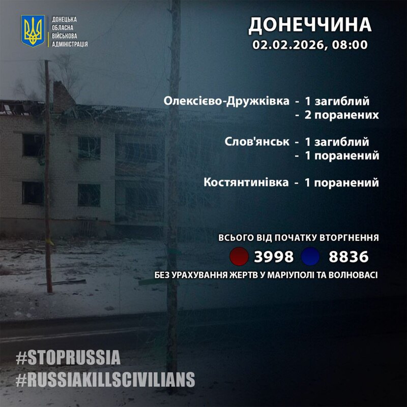 За минулу добу росіяни вбили двох мешканців Донецької області – у Слов'янську та Олексієво-Дружківці.