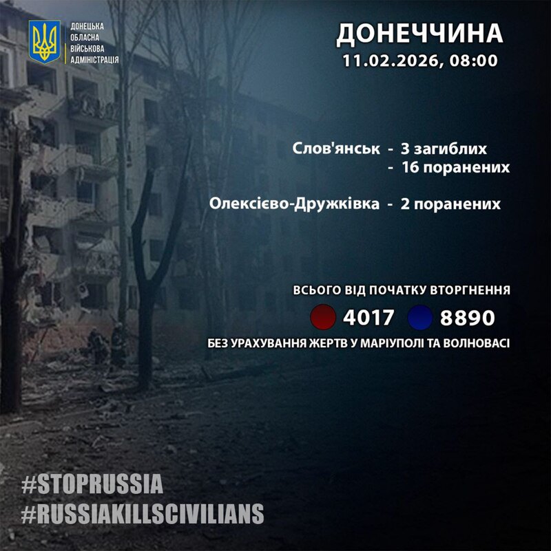 За минулу добу, 10 лютого росіяни вбили трьох мешканців Донецької області.