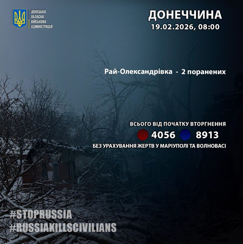 Російська армія за минулу добу поранила двох мешканців Рай-Олександрівки Донецької області.