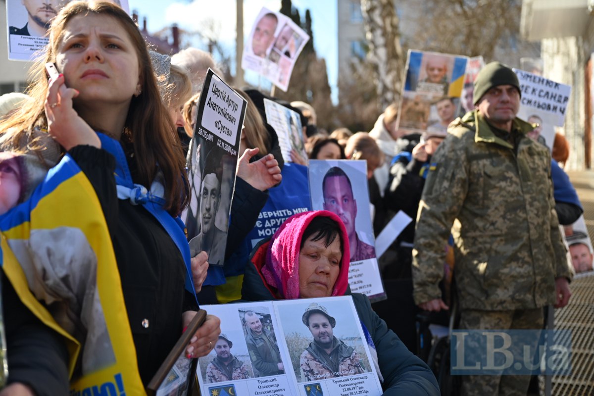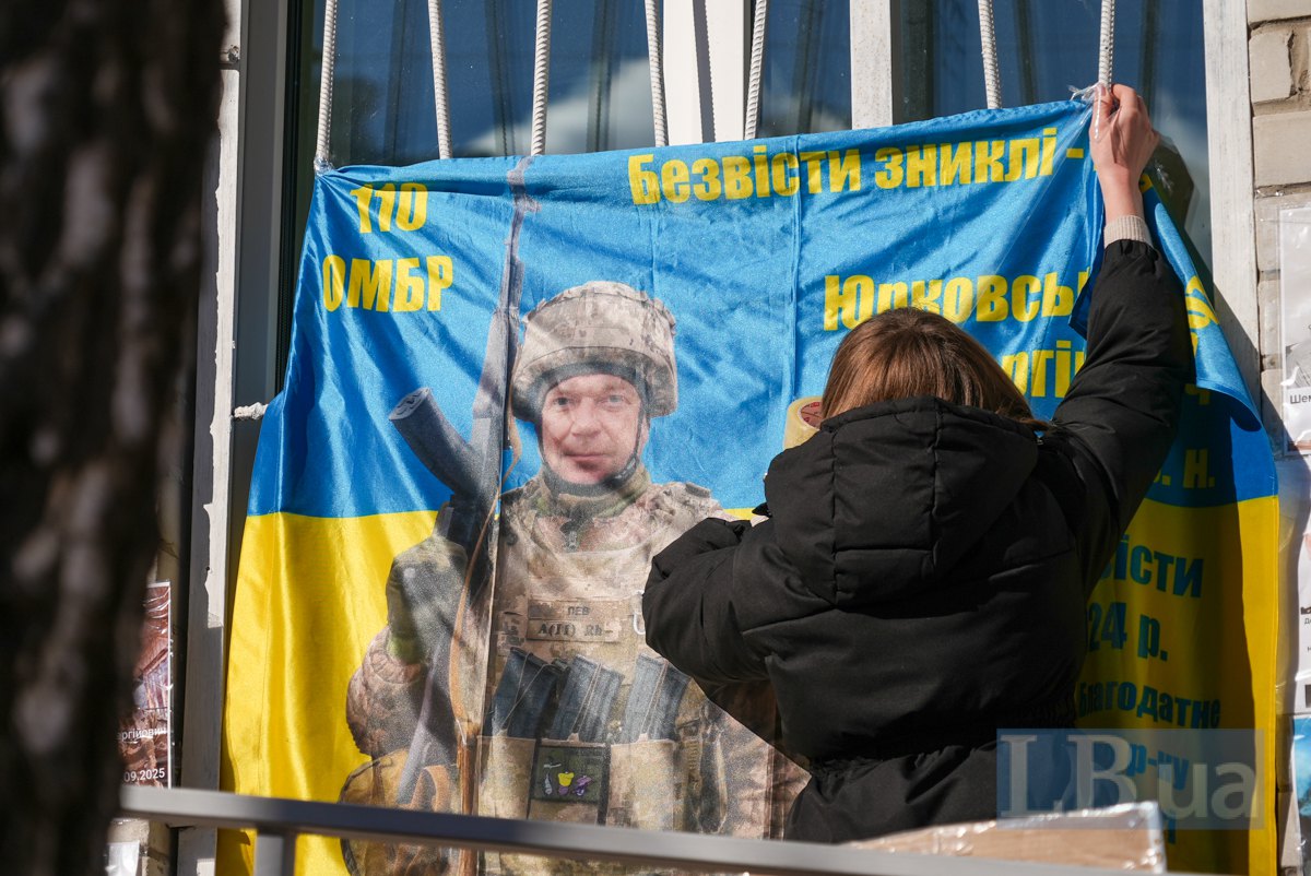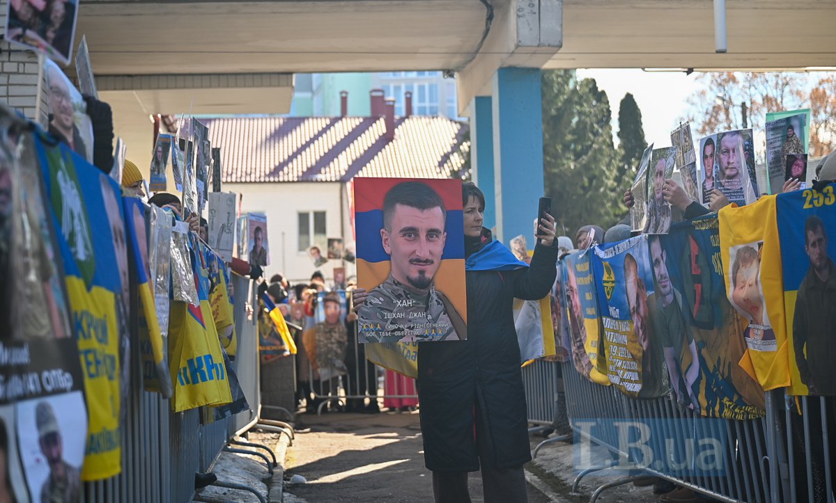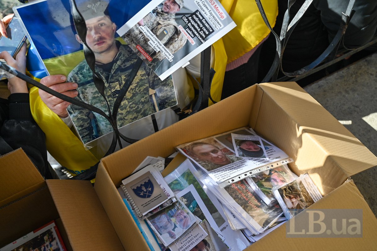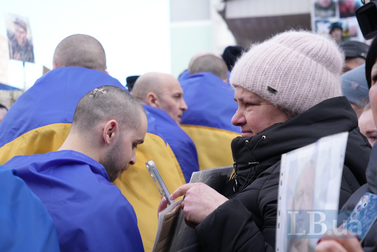 Другий день очікування зустрічі зі звільненими з полону видався дуже сонячним. На сонці портрети зниклих безвісти та полонених на світлинах та прапорах в руках родичів стають яскравішими і живими. В той час як фігури рідних, що тримають їх, проти сонця стають зовсім чорними. Від відчаю та невідомості про долю своїх рідних люди їдуть з усіх куточків України на місце зустрічі звільнених, годинами чекають: може, хтось упізнає їхніх. У відчаї просять фотографів сфотографувати портрети їхніх рідних.