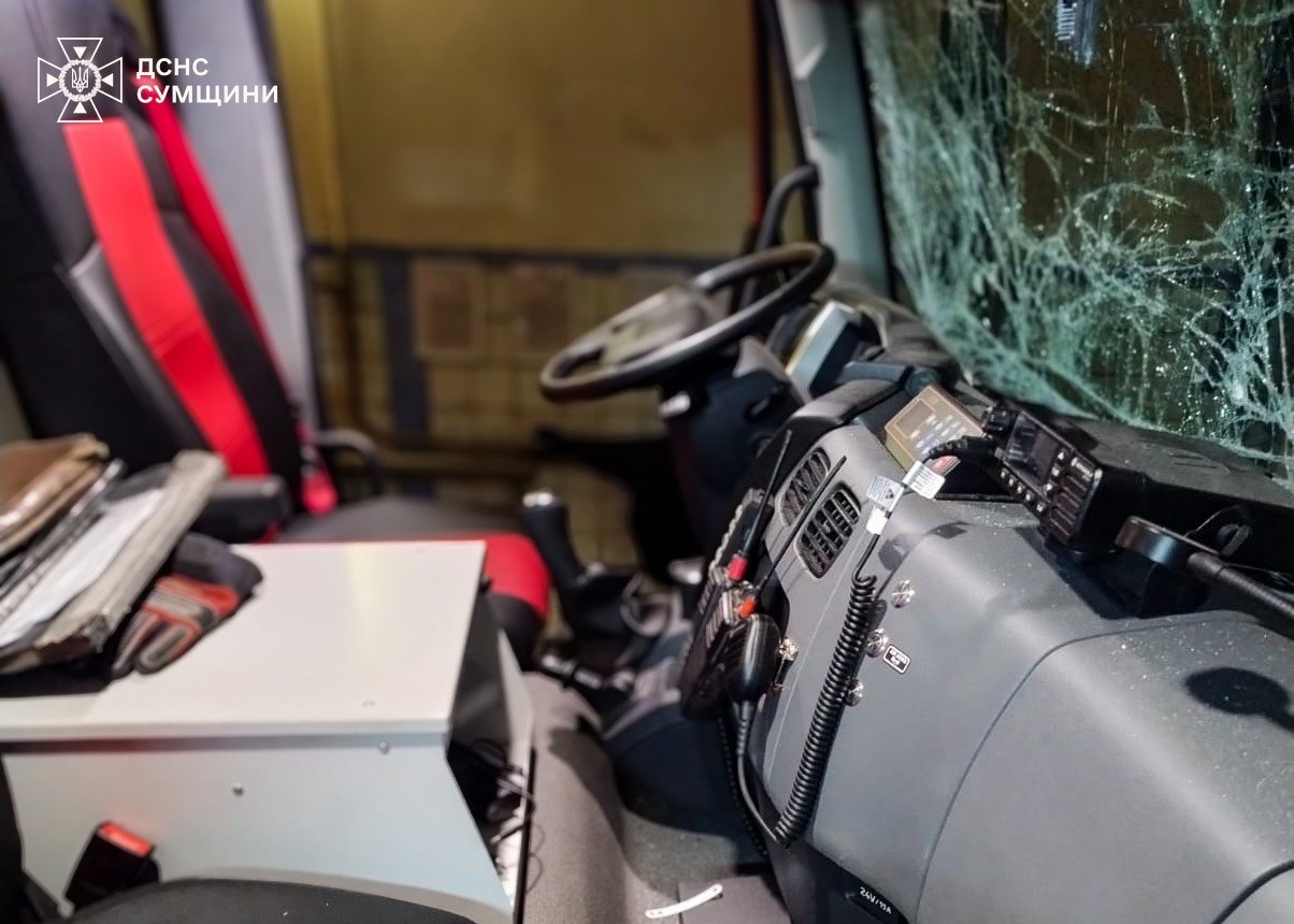 У Сумах ворог завдав удару по рятувальниках: пошкоджено пожежний автомобіль.