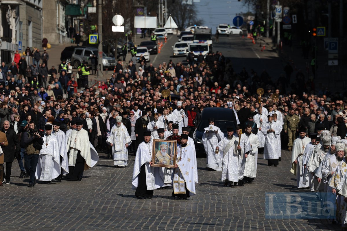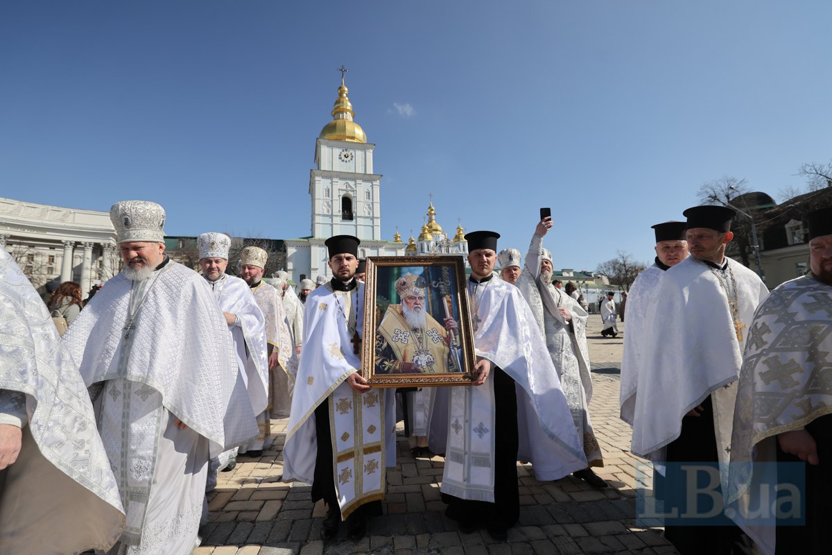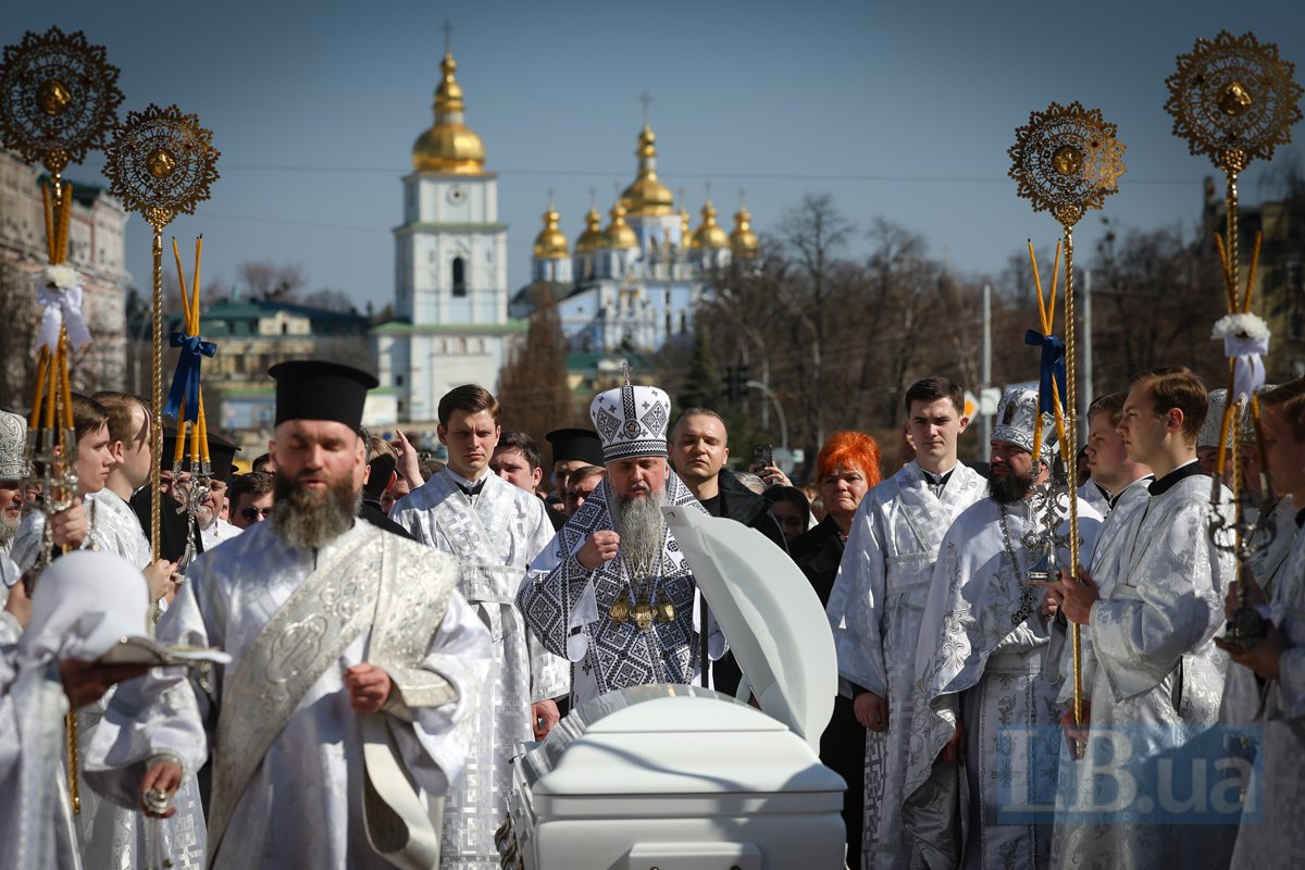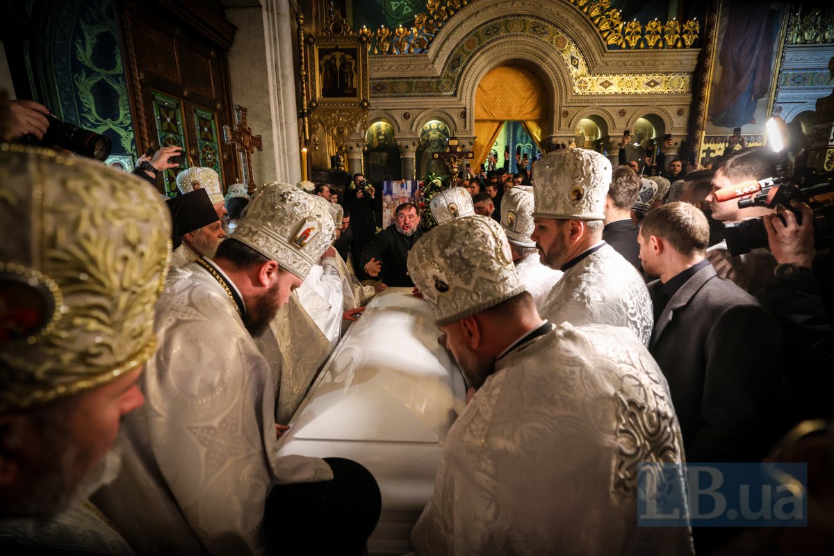Далі жалобна процесія пройшла через Софійську площу до Володимирського собору, де служив спочилий Філарет.