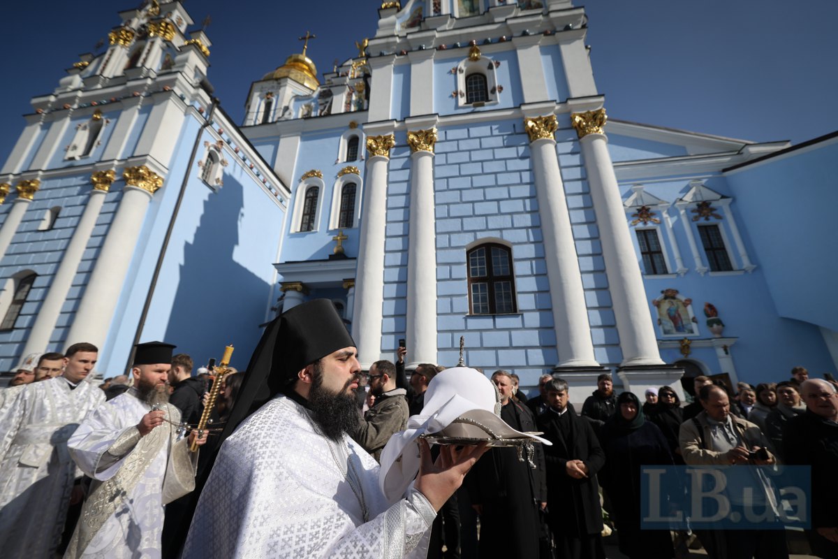 Зранку у Свято-Михайлівському Золотоверхому соборі Митрополит Епіфаній очолив Божественну літургію та чин відспівування Патріарха.