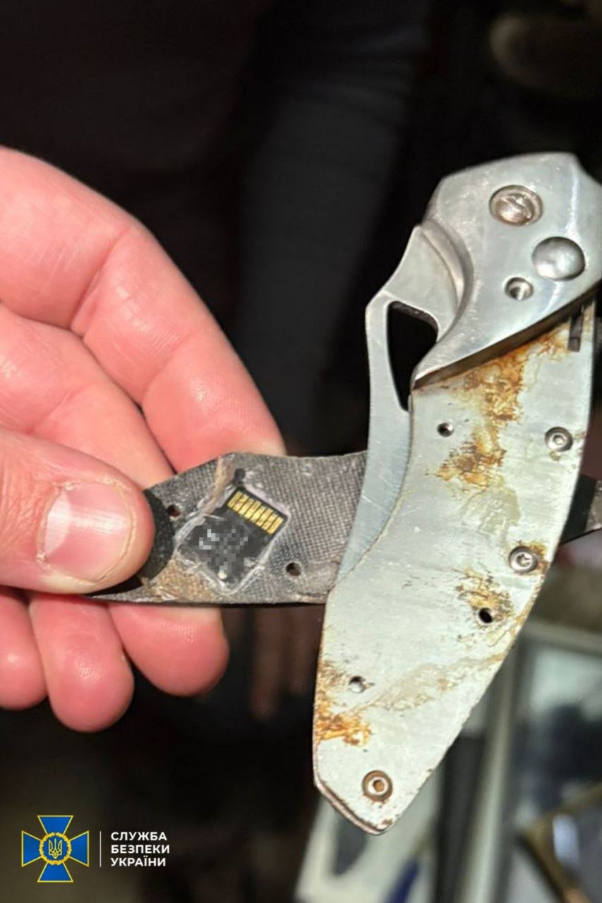 Під час обшуків у нього вилучено смартфон та флеш-носій, замаскований у складеному ножі, із доказами роботи на гру РФ.