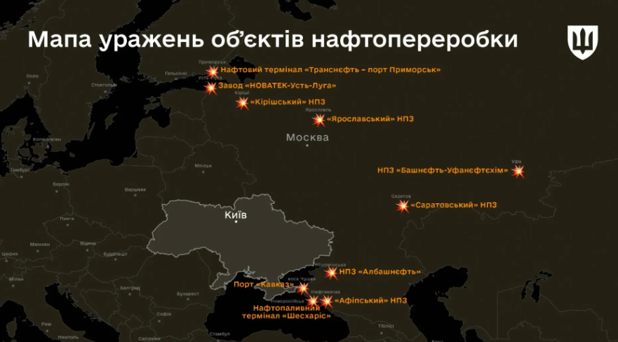 Загалом завдяки deep strike уражено 10 обʼєктів нафтової промисловості: НПЗ рф, термінали і порти.