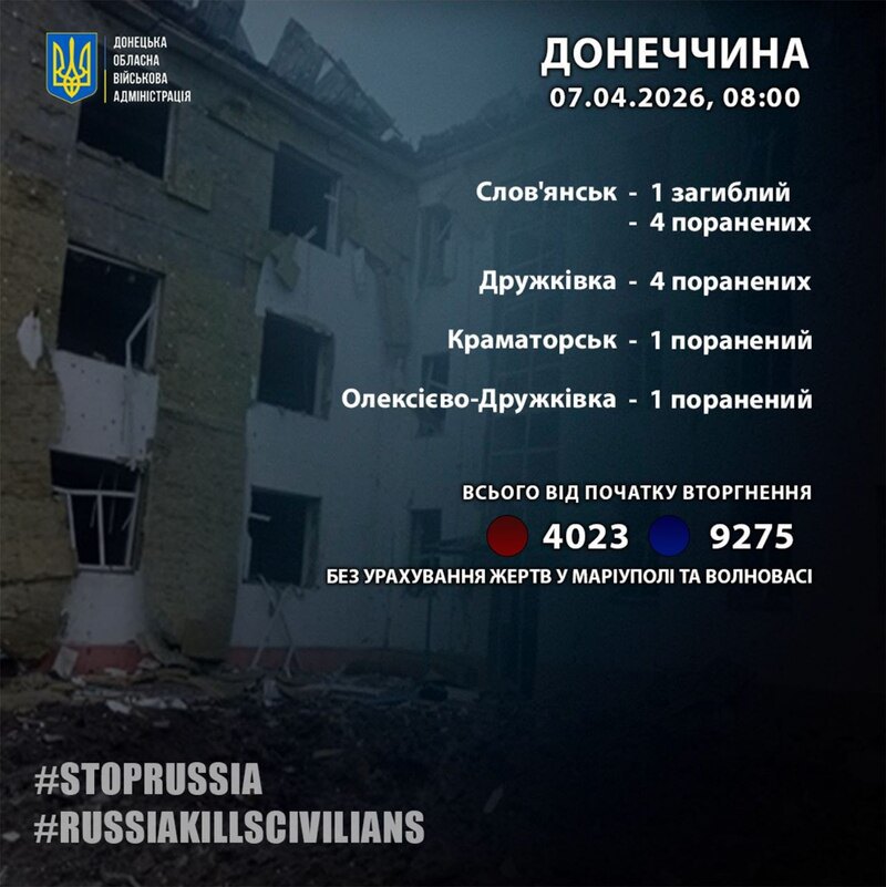 Ще 10 людей в області за добу дістали поранення: у Слов’янську, Дружківці, Краматорську та Олексієво-Дружківці.