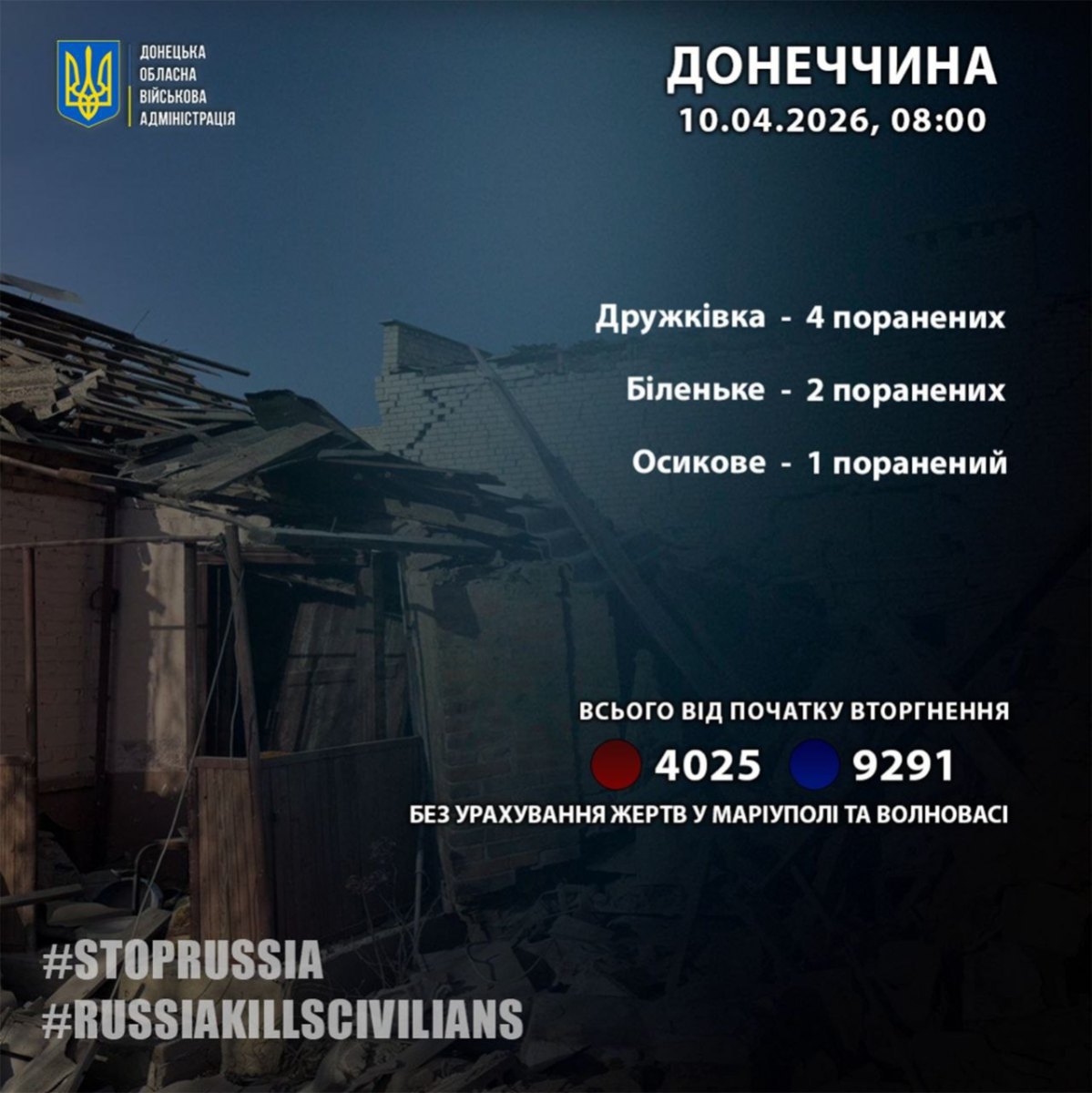 За минулу добу 9 квітня росіяни поранили сімох жителів Донецької області.