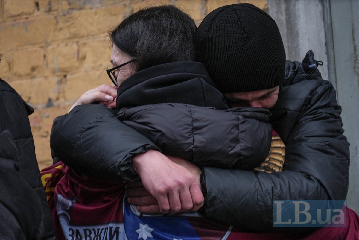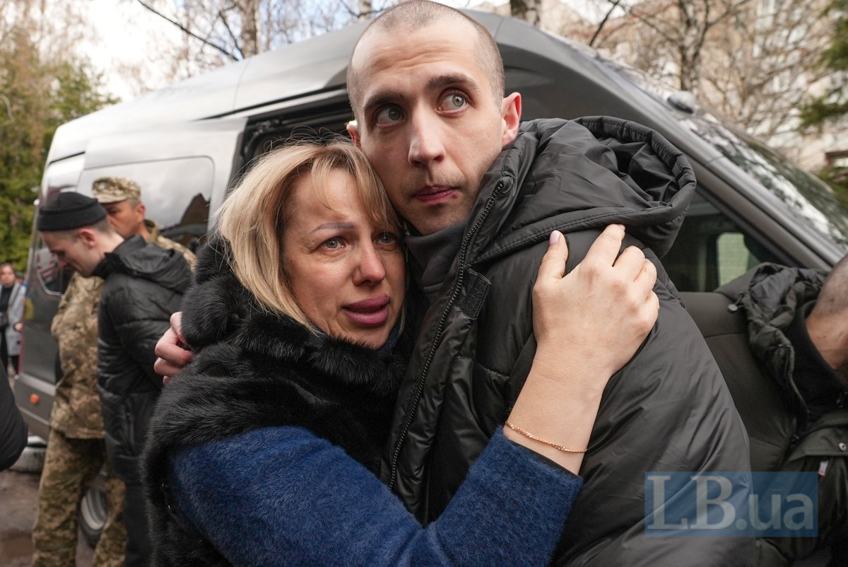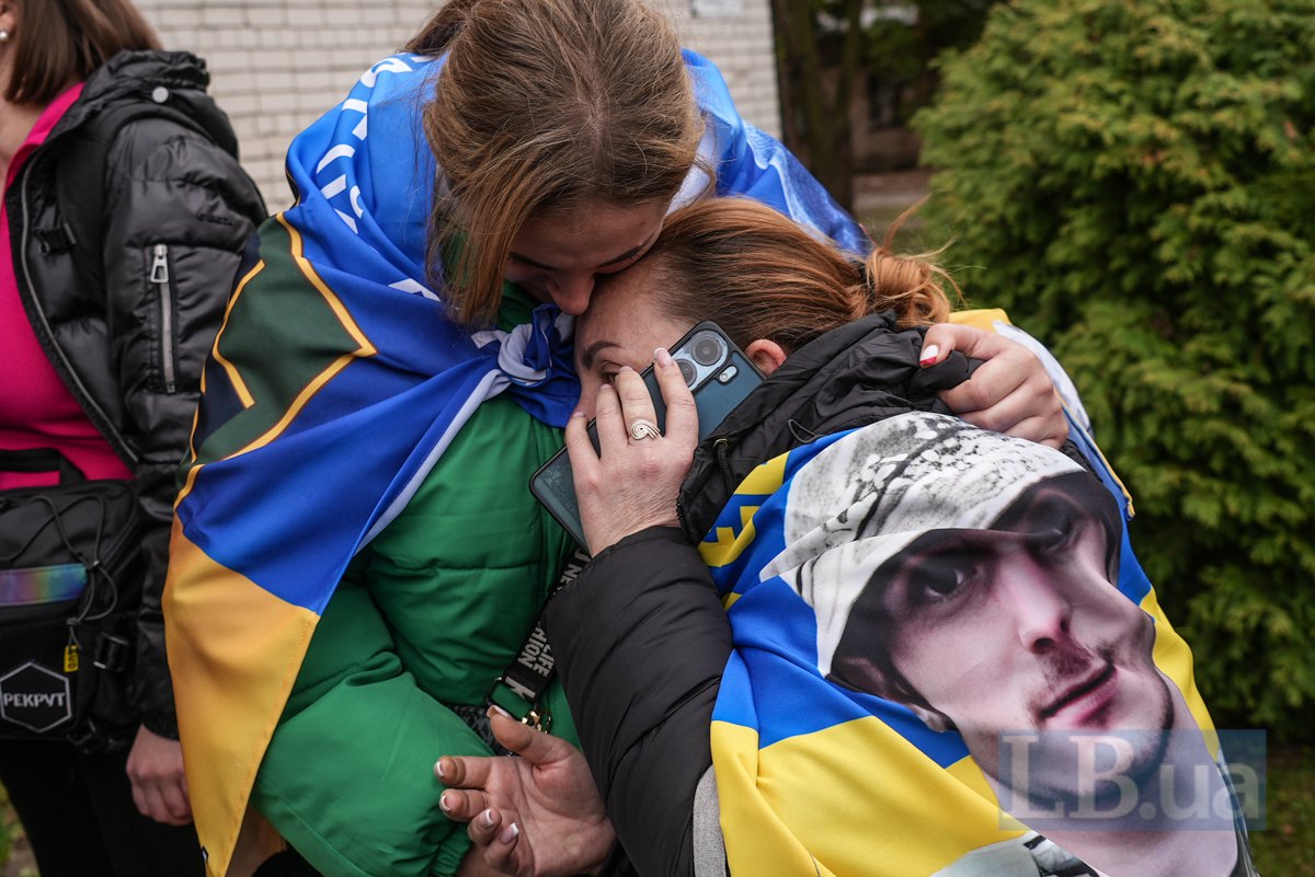 «Візьми себе в руки, тобі ж його надо обійняти й поцілувати, бо його вже звільнили», – каже, притримуючи Світлану, інша жінка.