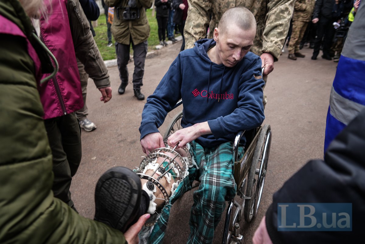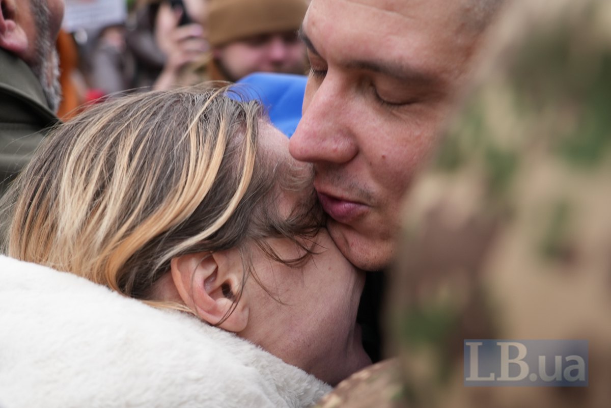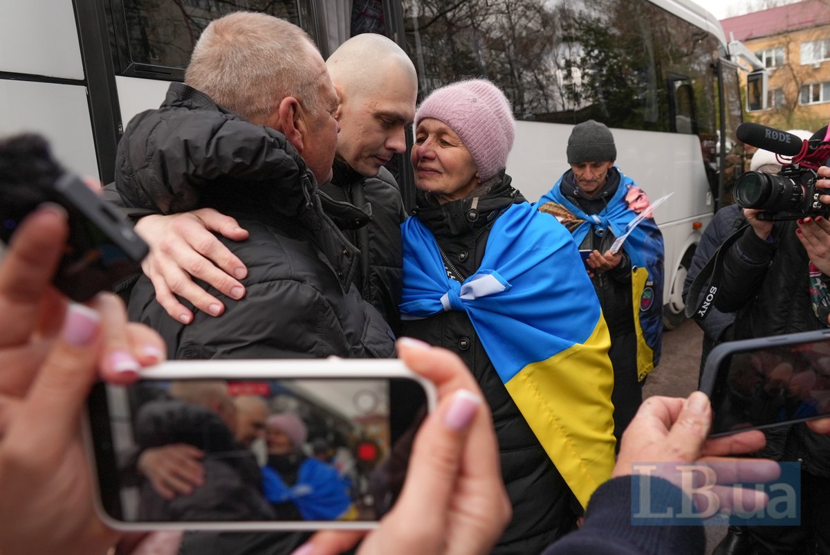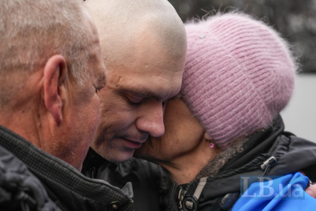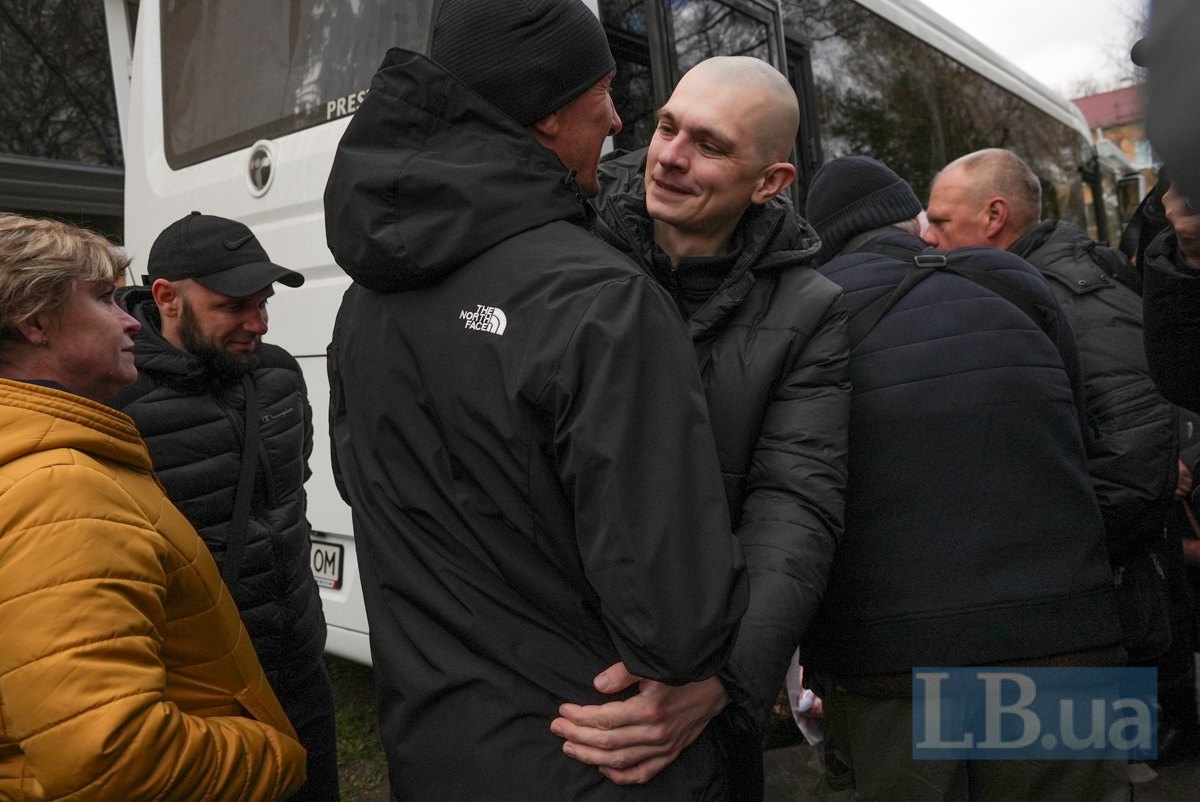 «Я не вірю досі, що я вже вдома, – розповідає нацгвардієць Максим, який теж провів чотири роки в полоні. – Уже з мамою дали звʼязатися. Ком у горлі застряг, не зміг нічого сказати. Я не знав про обмін, жодної інформації не було. Це було, як етап. Кожен раз під час етапу нас фотографують з усіх сторін. Ми говоримо, що у нас немає претензій до Російської Федерації, що у нас усе добре, що годують добре (поруч другий звільнений з полону нацгвардієць на слові «добре» показує, що це – в лапках), що медичну допомогу отримуємо. І потім ми їдемо на наступний етап. Я до крайнього не знав, поки в літак не сіли і вже не побачив українські номери автобусів – всьо!!! Зайшли в автобус двоє чоловіків і ми почули: «Доброго дня, хлопці!». Та! Видихнули».