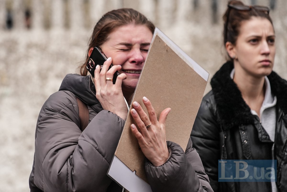 Так, Світлана дочекалась свого 22-річного сина Євгена. Отримавши повідомлення про звільнення сина, жінка скрикнула і почала труситись. Інші жінки обхопили її та посадили на лавку.