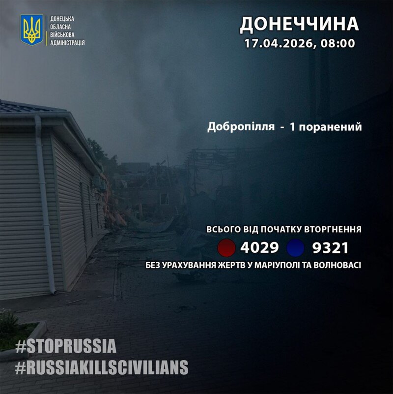 За минулу добу 16 квітня російська армія поранила одного жителя Донецької області.