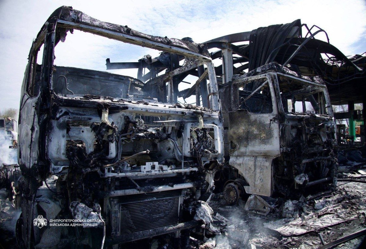 Також, за інформацією очільника Дніпропетровської ОВА, рятувальники загасили пожежу на АЗС у Дніпрі, яка виникла через ворожу атаку сьогодні вранці. Знищені 8 вантажівок і 4 легковики.