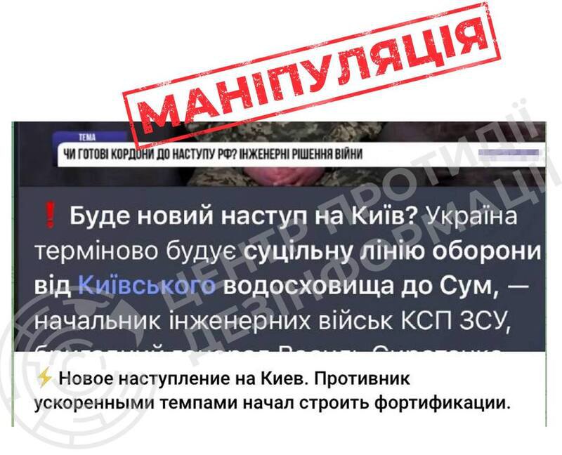 Як пояснюють у Центрі протидії дезінформації, приводом стали слова військових про будівництво фортифікаційних споруд на півночі України.