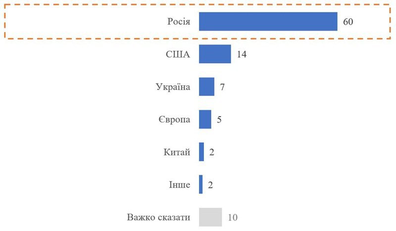 Також більшість українців – 60% – вважають, що найбільше зриває зусилля із завершення війни саме Росія.