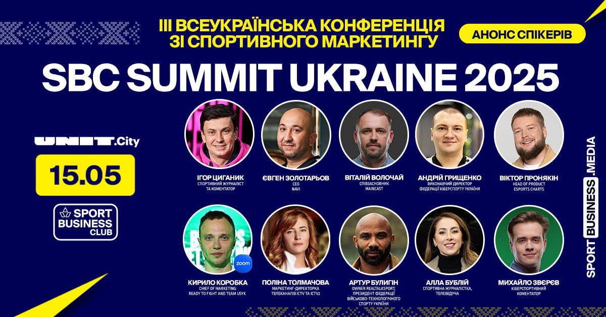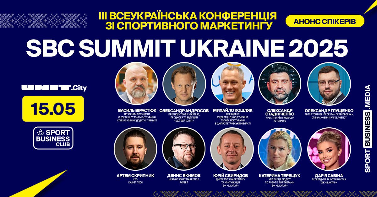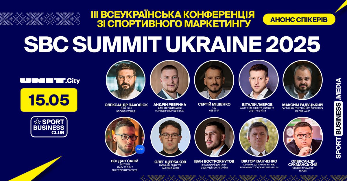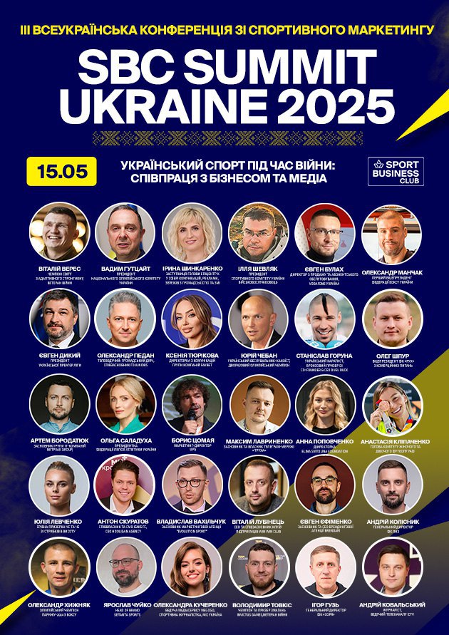 Спікери SBC Summit Ukraine 2025: Вадим Гутцайт, Ольга Саладуха, Олександр Хижняк, Ірина Шинкаренко (Епіцентр), Артем Бородатюк (Netpeak Group), Олександр Педан, Євген Булах (Vodafone Ukraine), Юрій Чебан, Артем Скрипник (Favbet Tech), Сергій Міщенко (GGBET), Станіслав Горуна, Олександр Пахолюк (МХП), Максим Радуцький (ФК «Динамо»), Юрій Свиридов (ФК «Шахтар»), Василь Вірастюк, , Євген Золотарьов (NAVI), Ігор Циганик та багато інших.