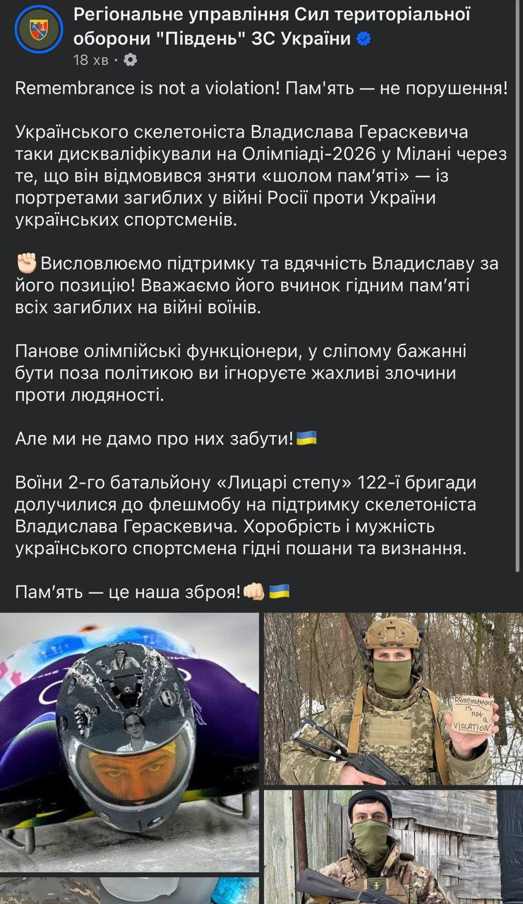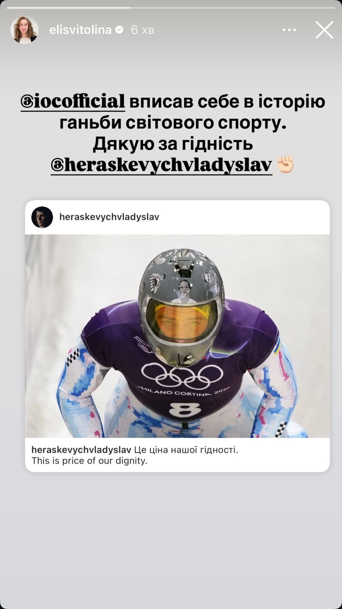 “Спорт не означає безпамʼятство, а олімпійський рух має допомагати зупиняти війни, а не підігравати агресору. На жаль, рішення Міжнародного олімпійського комітету дискваліфікувати українського скелетоніста Владислава Гераскевича говорить про інше. Це точно не про принципи олімпізму, які засновані на справедливості та підтримці миру. Я дякую нашому атлету за чітку позицію”, – написав глава держави.